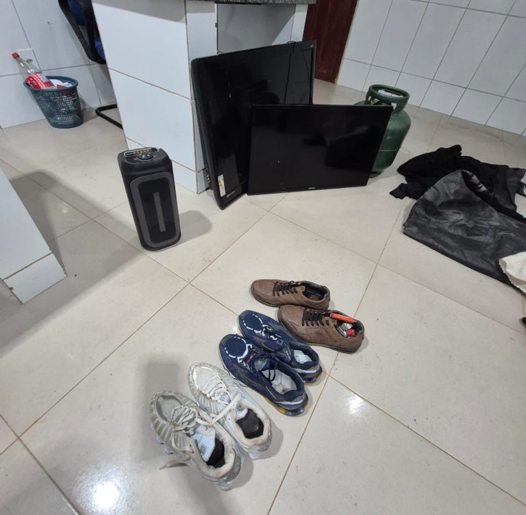 Entre os itens recuperados estão televisores, caixa de som, botijão de gás, calçados, aparelho TV Box e outros objetos.